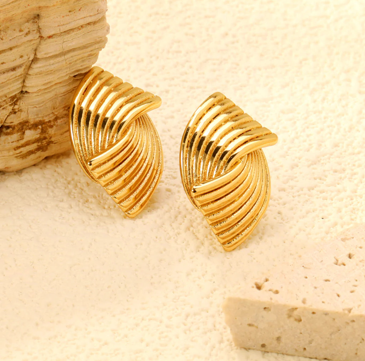 Sculptural and striking, the SALORA TWIST EARRINGS bring a modern spin to timeless elegance. These gold finished earrings features an intricate twisted design with openwork detailing that catches the light from every angle.