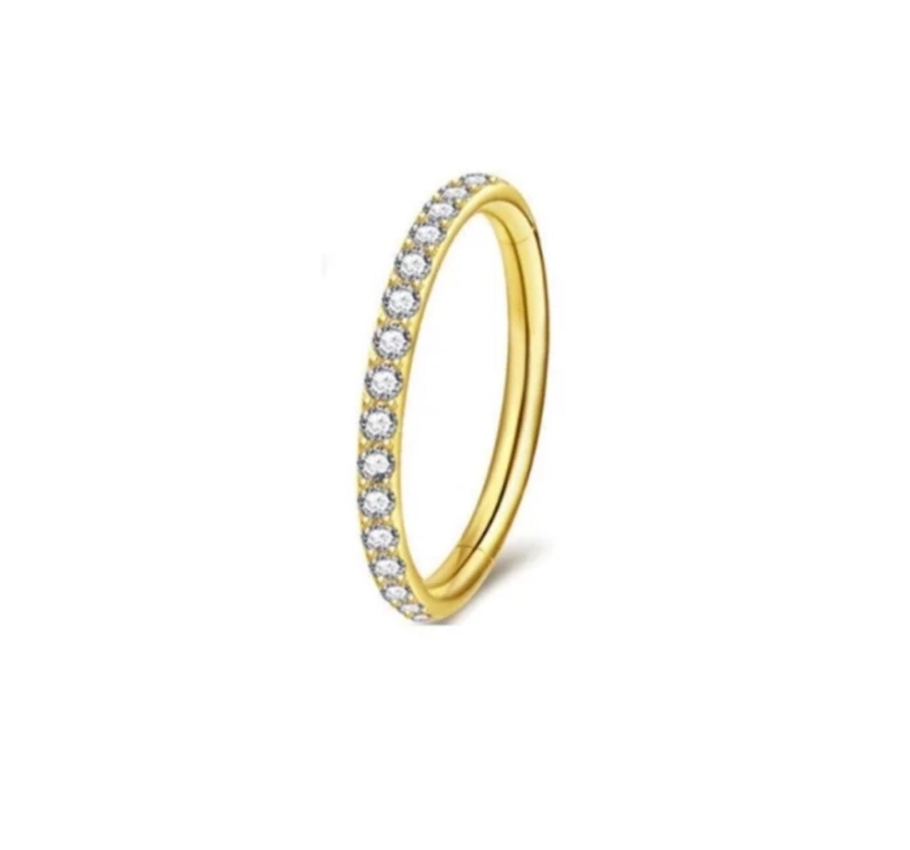 Elevate your piercing collection with this sophisticated nose ring, crafted from premium stainless steel and finished with 18k gold plating for lasting radiance. The round design features brilliant zircon studs that catch light beautifully, adding refined sparkle to any look. Built to withstand daily wear, this piece combines waterproof durability with hypoallergenic properties, making it ideal for sensitive skin. A versatile essential that transitions seamlessly from casual to formal occasions.