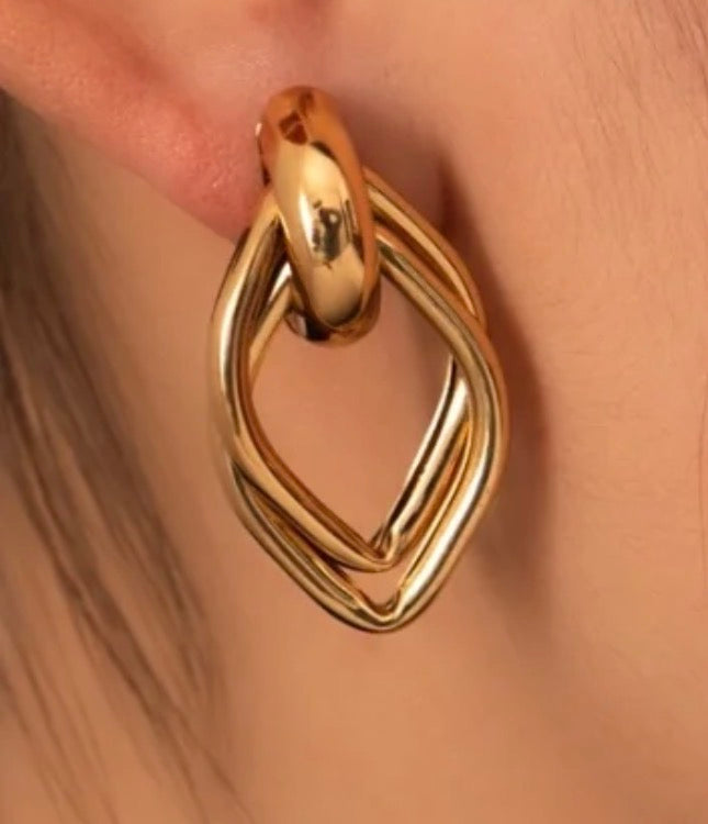 These sculpted gold twist drops adda refined modern elegance to any look. Their fluid, looped design creates a luxurious shine that catches light beautifully. Perfect for elevating both everyday style and evening outfits.